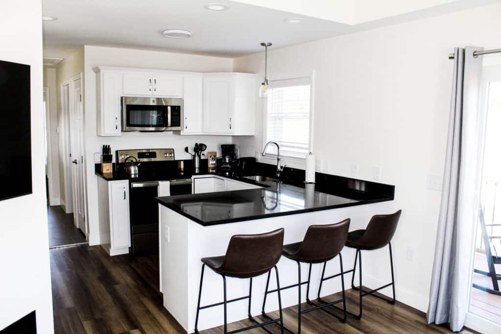 Those who love staying at The Nano’s will be thrilled to check out the Nano Deluxe – a culmination of guest feedback and improvements on the original Nano cottage that everyone knows and loves. The Deluxe Nano Cottage features a reconfigured kitchen with bar seating, a larger living room, a larger workspace, and vaulted ceilings throughout.