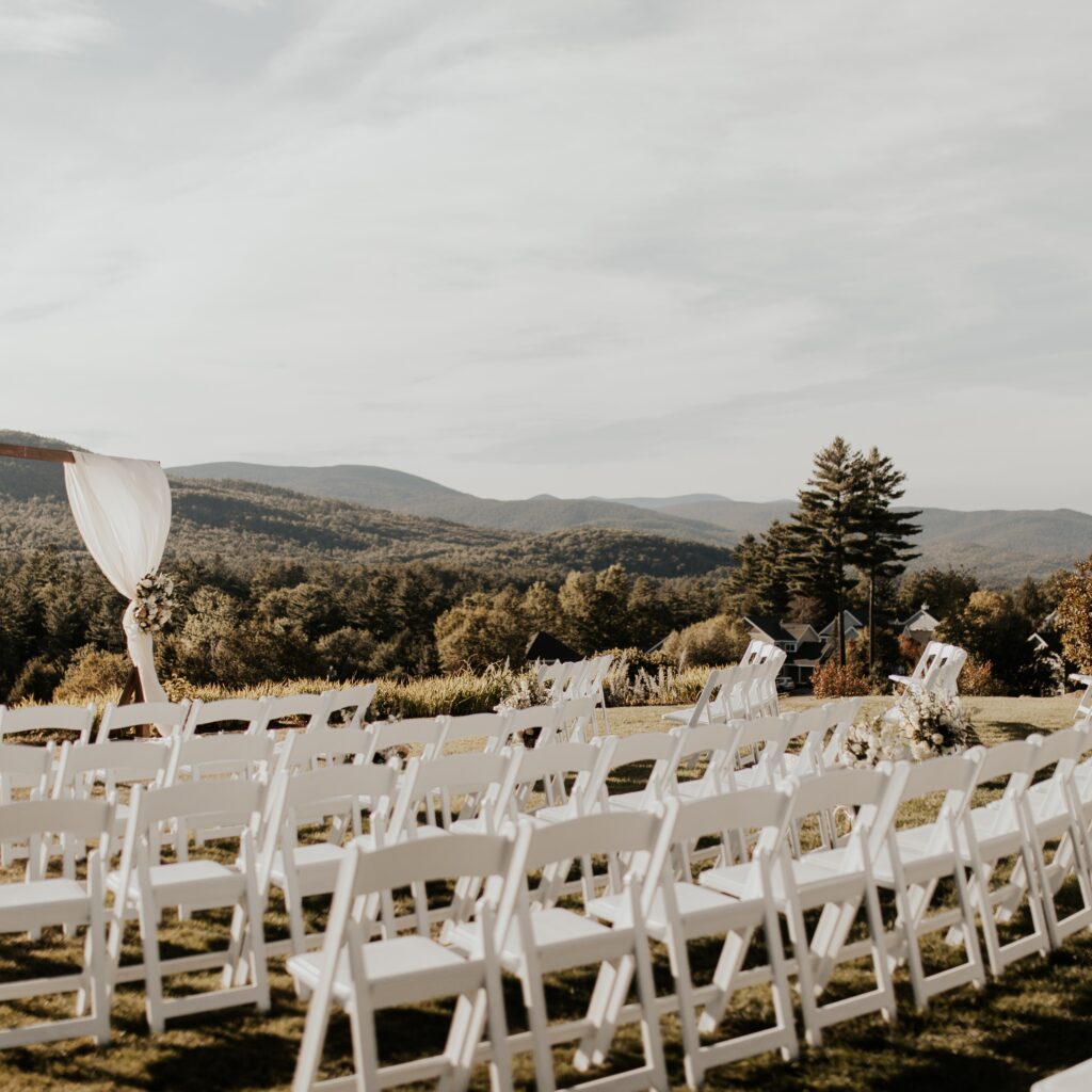 The Sunset Pavilion has a picturesque setting, nestled in the heart of nature, and provides the perfect backdrop for your special occasion. Wedding ceremonies take place on a fieldstone patio, set to be adjacent to the Sunset Pavilion with Franconia Notch towering above in the background. Whether you’re planning a wedding, community events, concerts, corporate retreats, or a memorable celebration, our versatile event space offers a unique blend of rustic charm and modern amenities. With panoramic views, lush landscapes, open-air design, and a touch of rustic elegance, the Sunset Pavilion is the ideal canvas for your next unforgettable event.